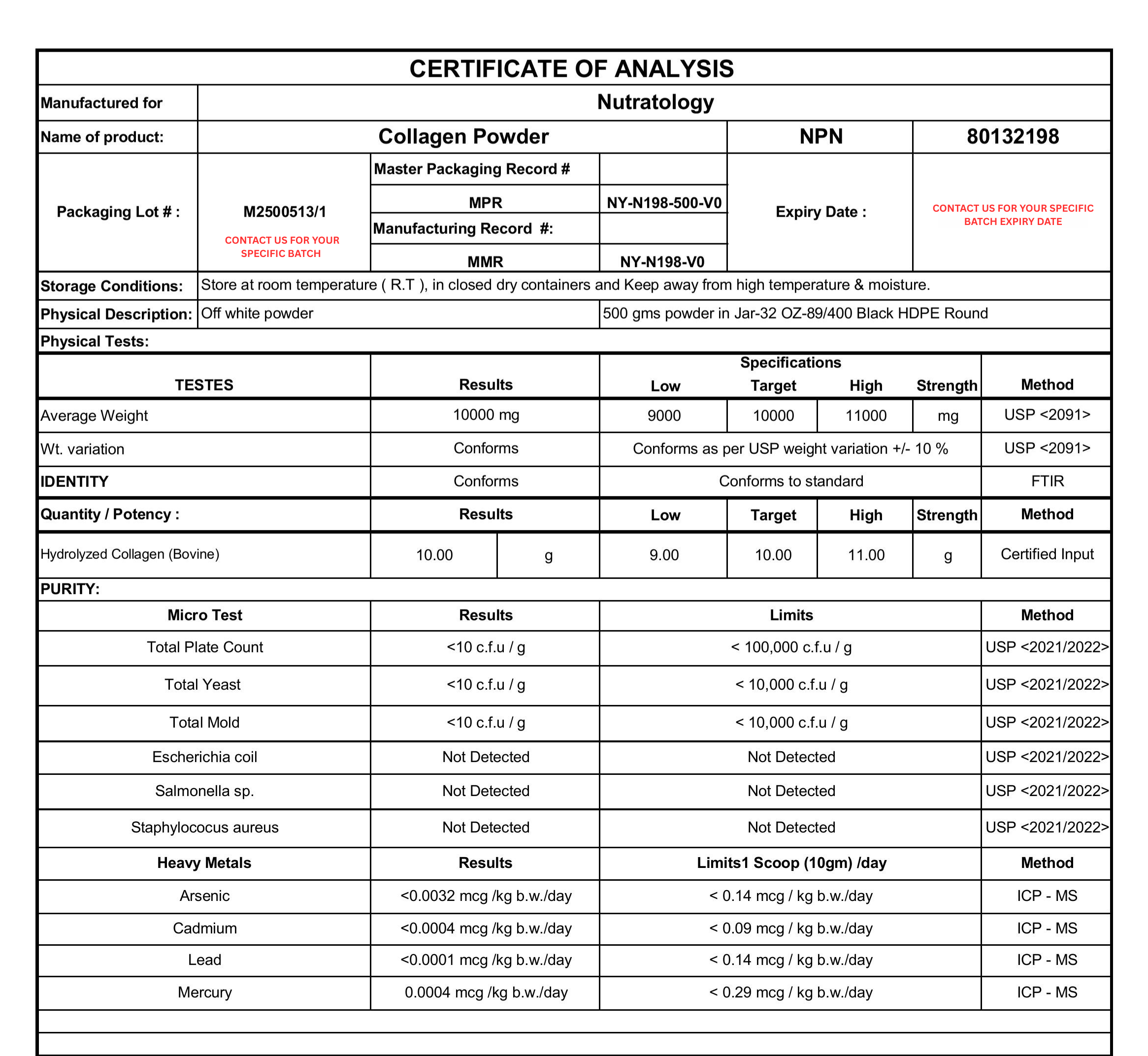 NOTE: For your specific batch lab results, please contact us with a clear picture of the bottom of your bottle to receive the lab results for your unique purchase.