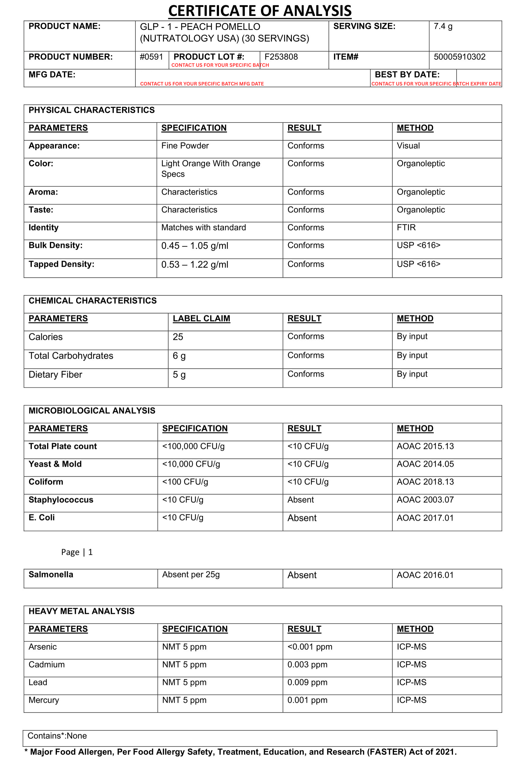 NOTE: For your specific batch lab results, please contact us with a clear picture of the bottom of your bottle to receive the lab results for your unique purchase.