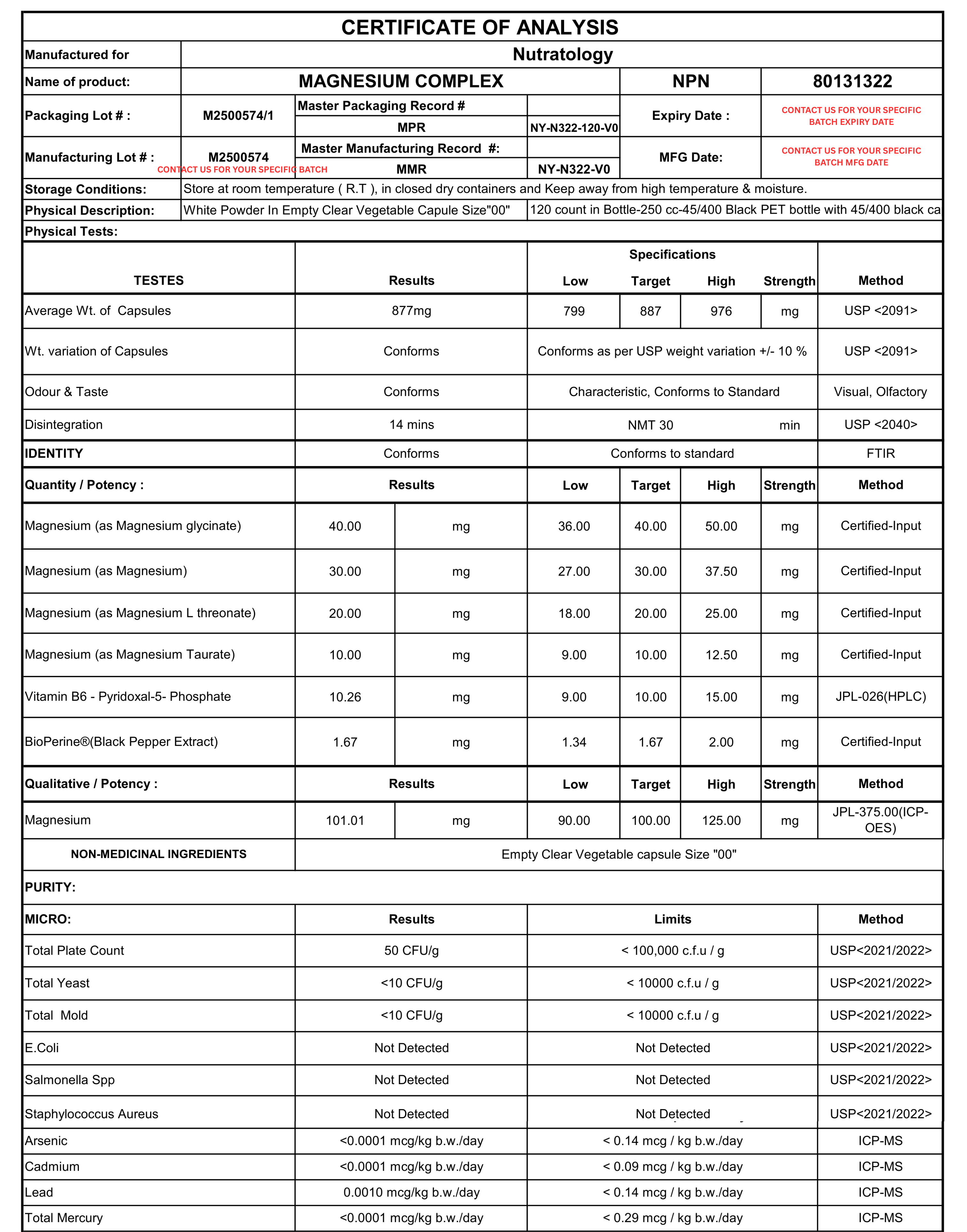 NOTE: For your specific batch lab results, please contact us with a clear picture of the bottom of your bottle to receive the lab results for your unique purchase.