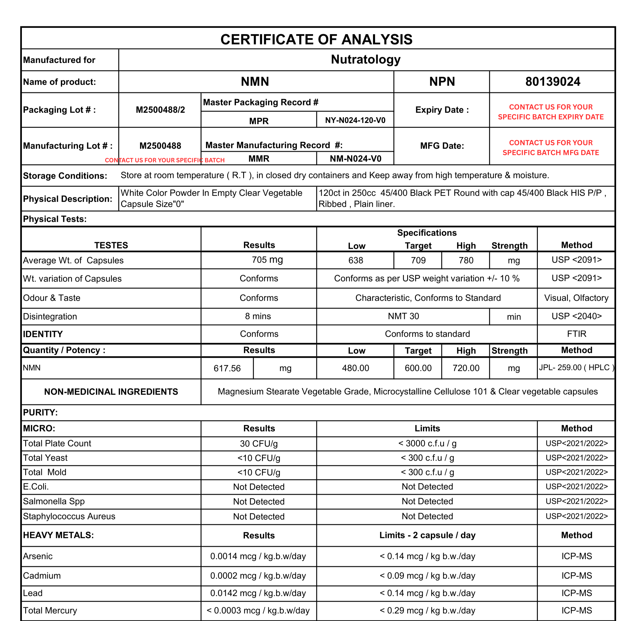 NOTE: For your specific batch lab results, please contact us with a clear picture of the bottom of your bottle to receive the lab results for your unique purchase.